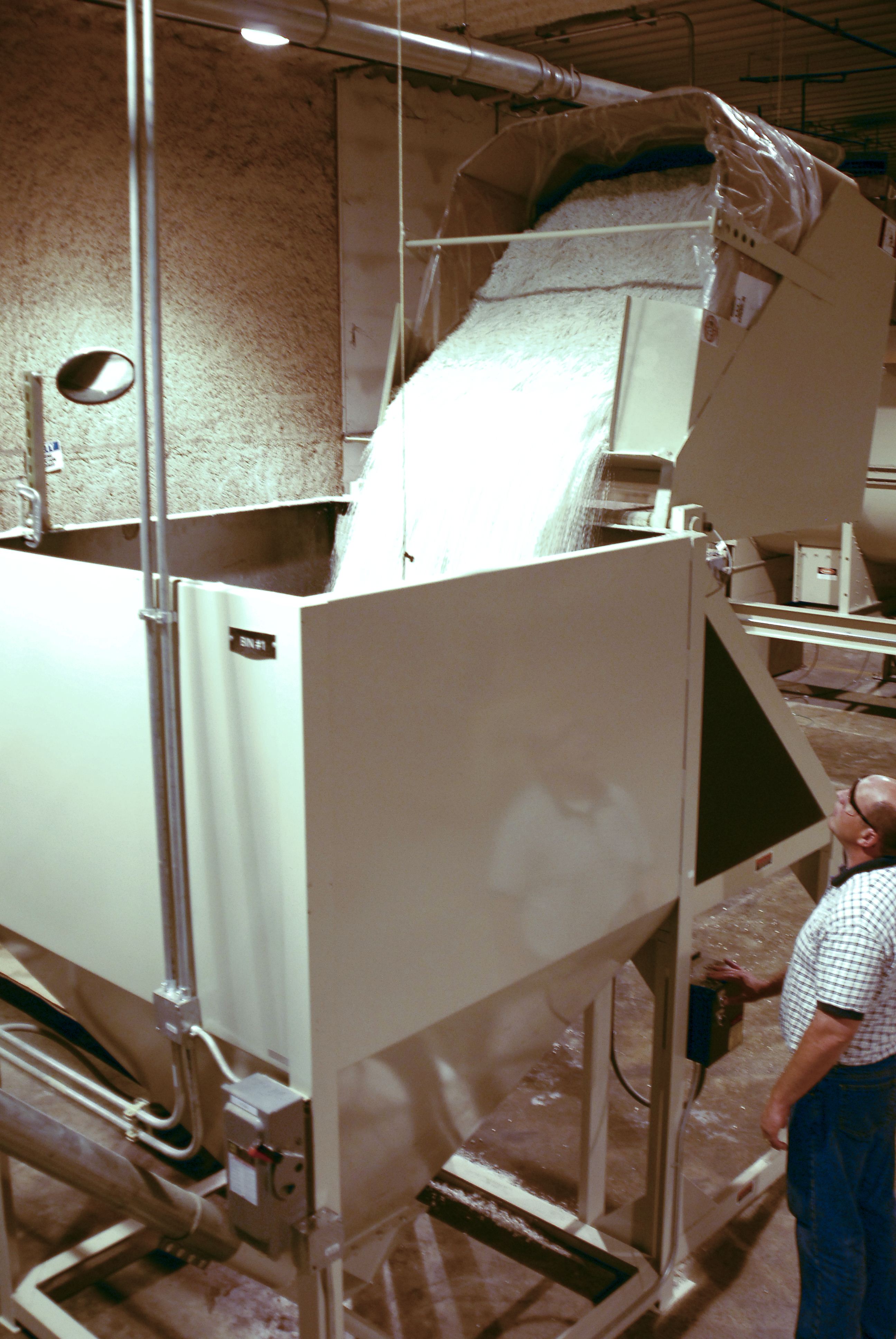 - Davidson chops the plastic into a fine, even consistency.