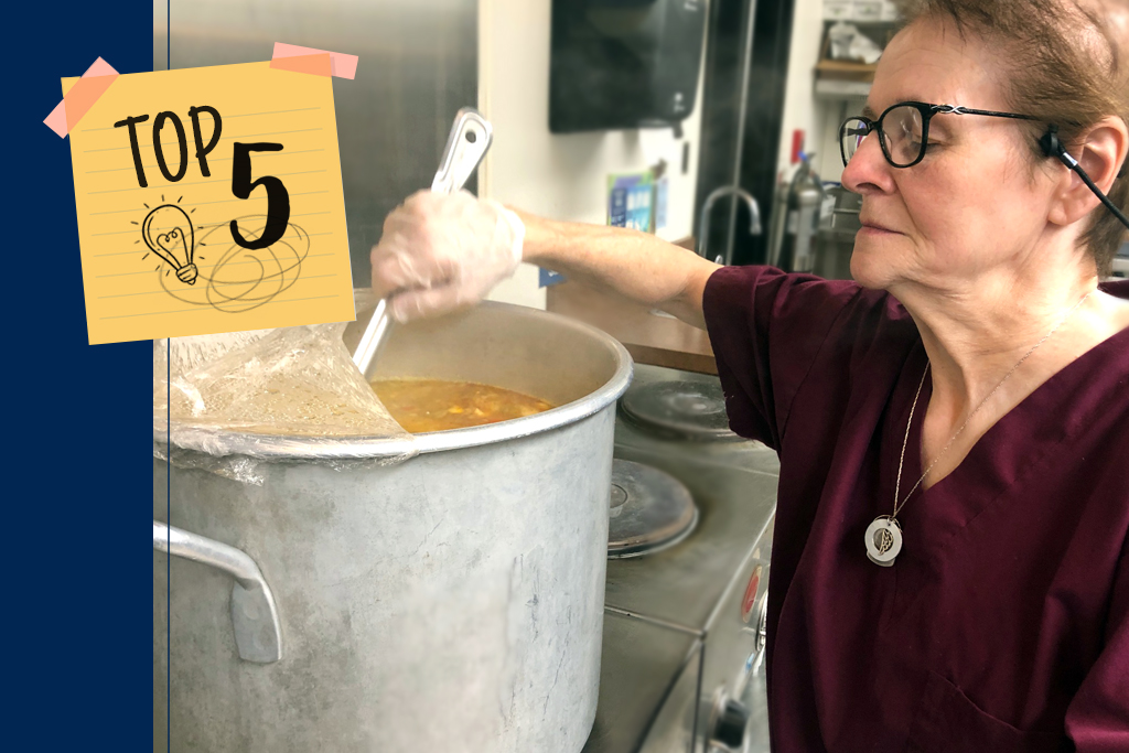 The holidays are all about spending quality time with friends and family — often while gathered around plates of delicious food. However, feeding a crowd can take know-how and a tiny bit of courage. Sue Balcom, our Food Services Supervisor, has both. She leads a team of 5 dedicated food service staff who prepare meals for up to 500 employees a day, and cater around 300 corporate events per year!