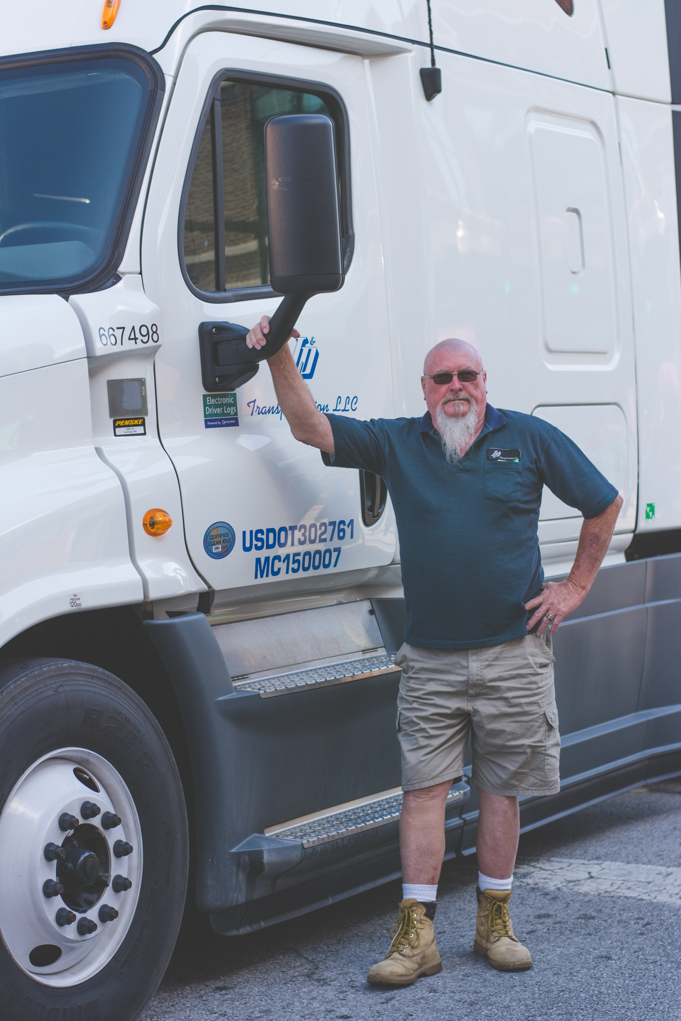 Jerry Camron stands in front of his semi-truck.